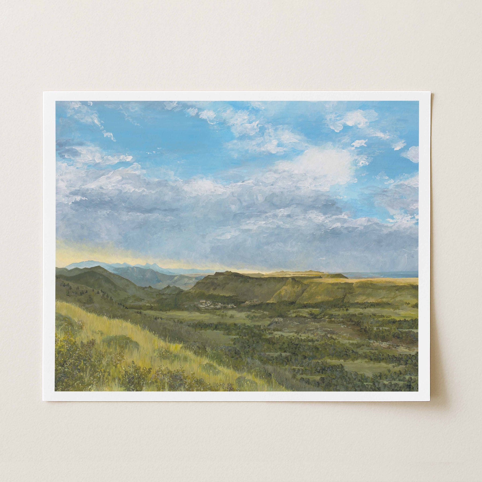 This giclée print is an archival-quality reproduction of an acrylic painting, created to capture the depth, texture, and rich color of the original artwork. Each print includes a 1-inch white border for easy matting and framing. The title of the piece and Rebecca’s signature are handwritten beneath the image.